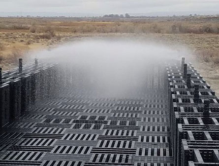 In four months from groundbreaking to completion, ECOVAP was able to install multiple EM-Float™ matrices to evaporate water at over 59x the normal rate per square foot of surface space. This was done without any increase in the land footprint of the site, which was previously a very limiting production factor with the site’s conventional evaporation ponds. As a result, this mine will be increase production of the mine and eliminate water disposal as a limiting factor for future growth. Estimates meet or exceed an 85% lower cost compared to the alternative of trucking the wastewater to a disposal site and 50% less costs than alternate water disposal technologies.